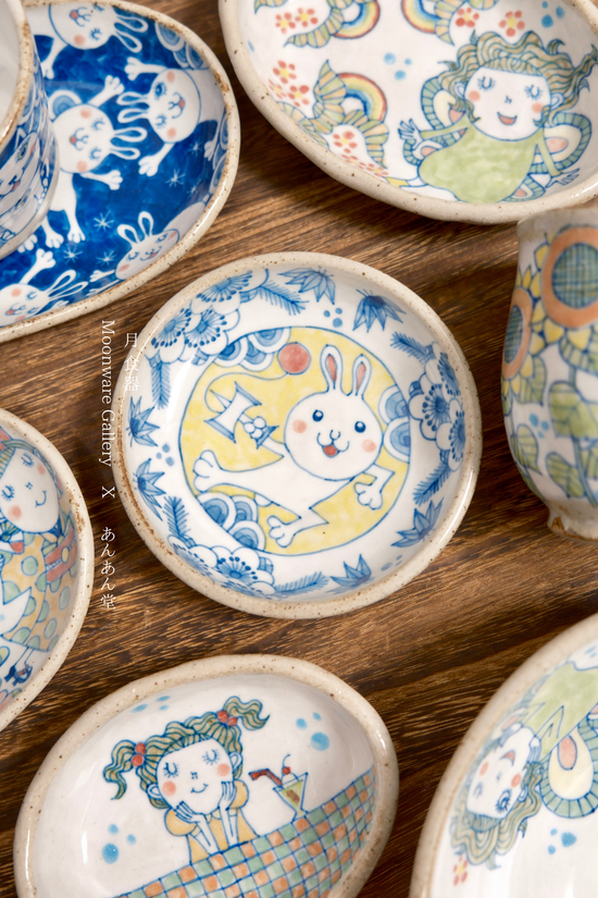Mino Ware 11.5cm Blue/Pink Rice Bowl- Regular price