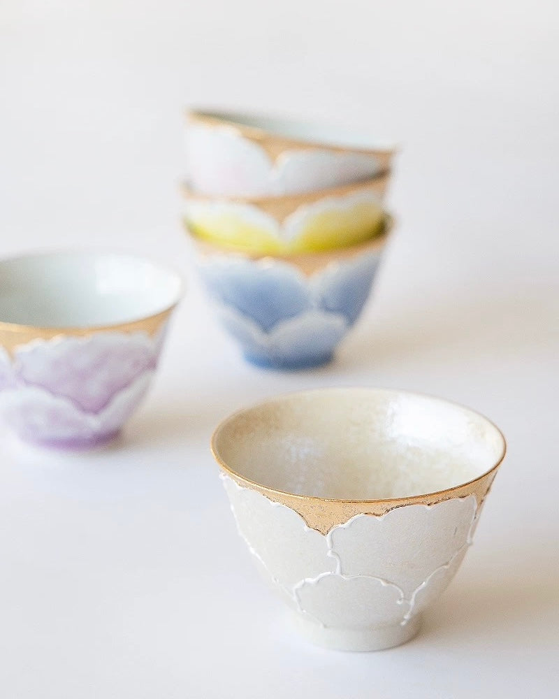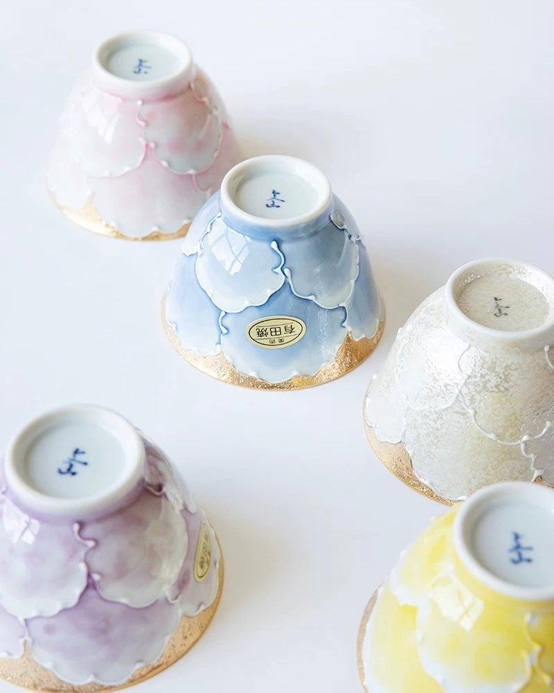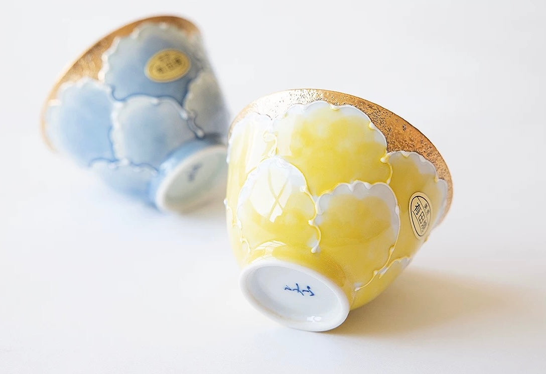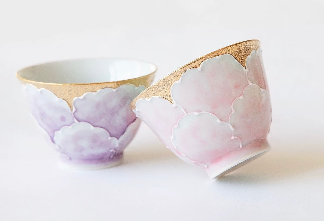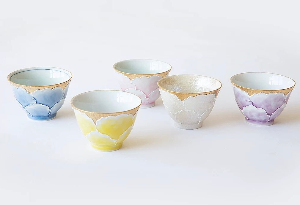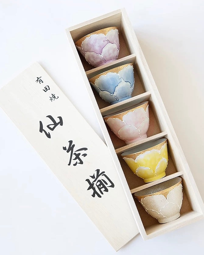 Arita ware 5pcs Peony Tea Cups(Wooden Box)