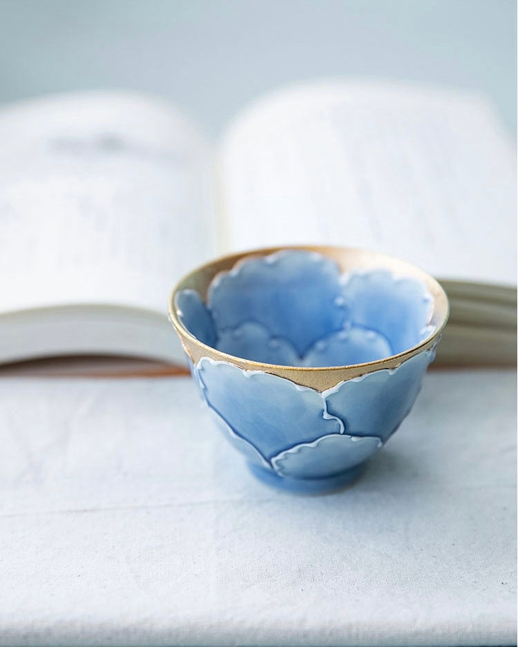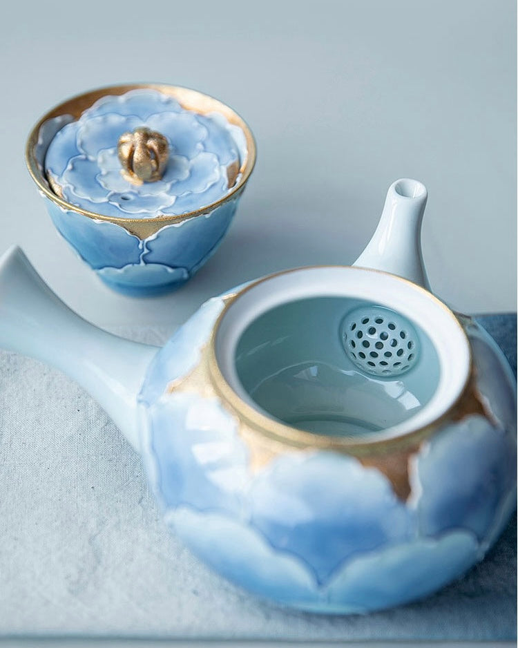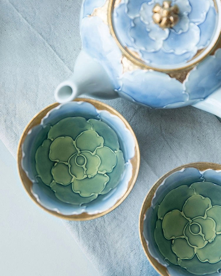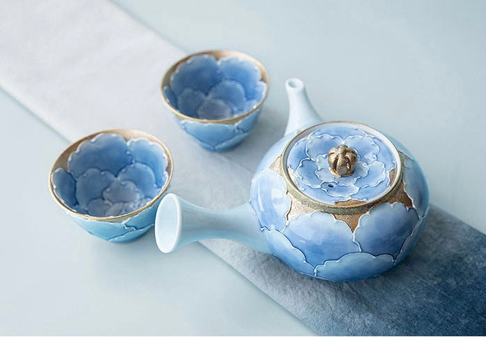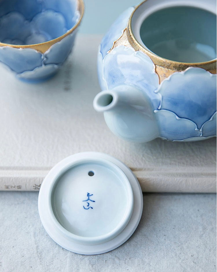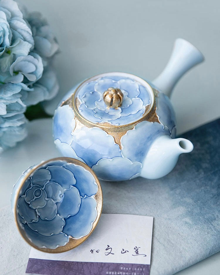 Arita Ware Blue Gold Peony Teapot Set (Wooden Box)