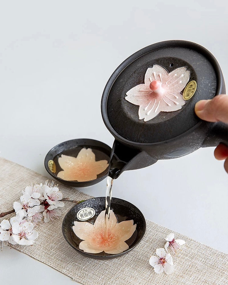 A set comes with one teapot and two cups. Teapot size: 300ml.   Teacup size: 60ml.