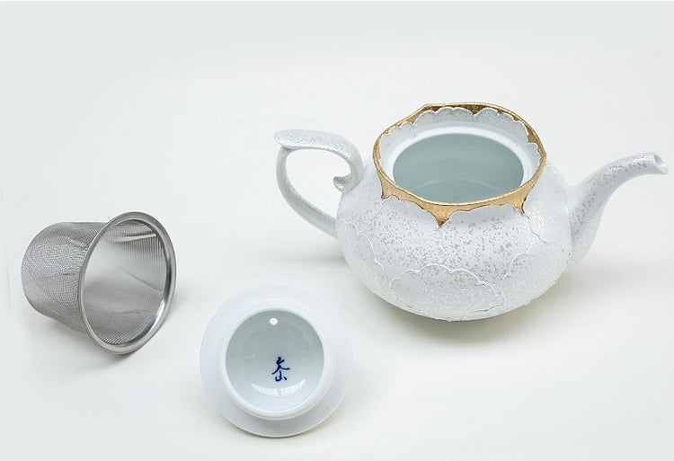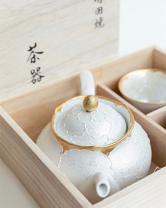 Arita Ware White Gold Peony Teapot Set (Gift Box)