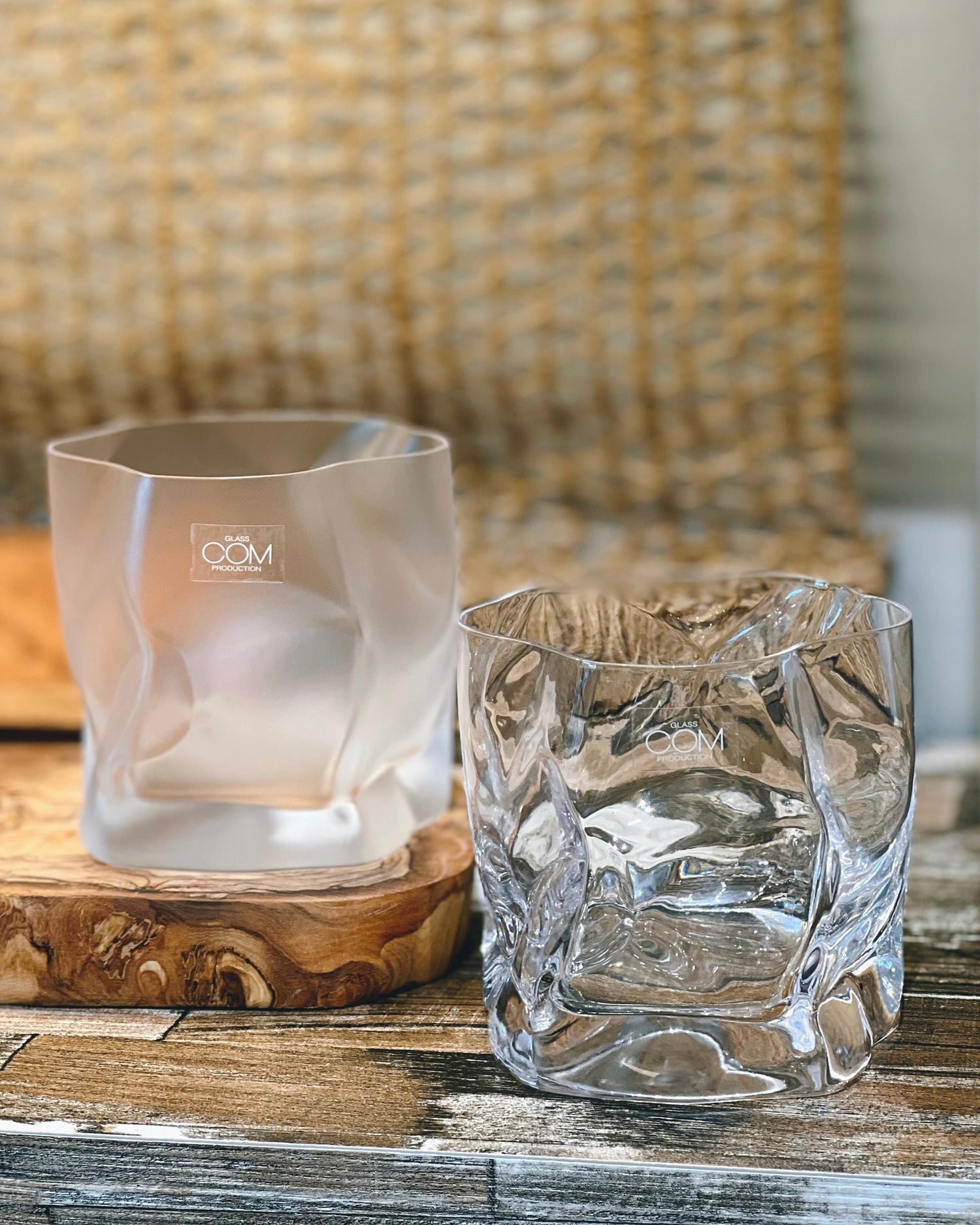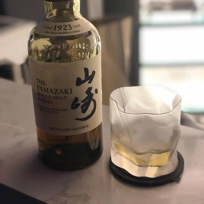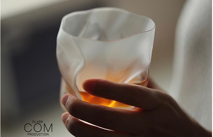 日本制,日本作家小松诚与木村硝子合作系列褶皱酒杯,可以放下一整个冰球。设计灵感来源于褶皱的纸张,非常富有艺术感的表现形式。