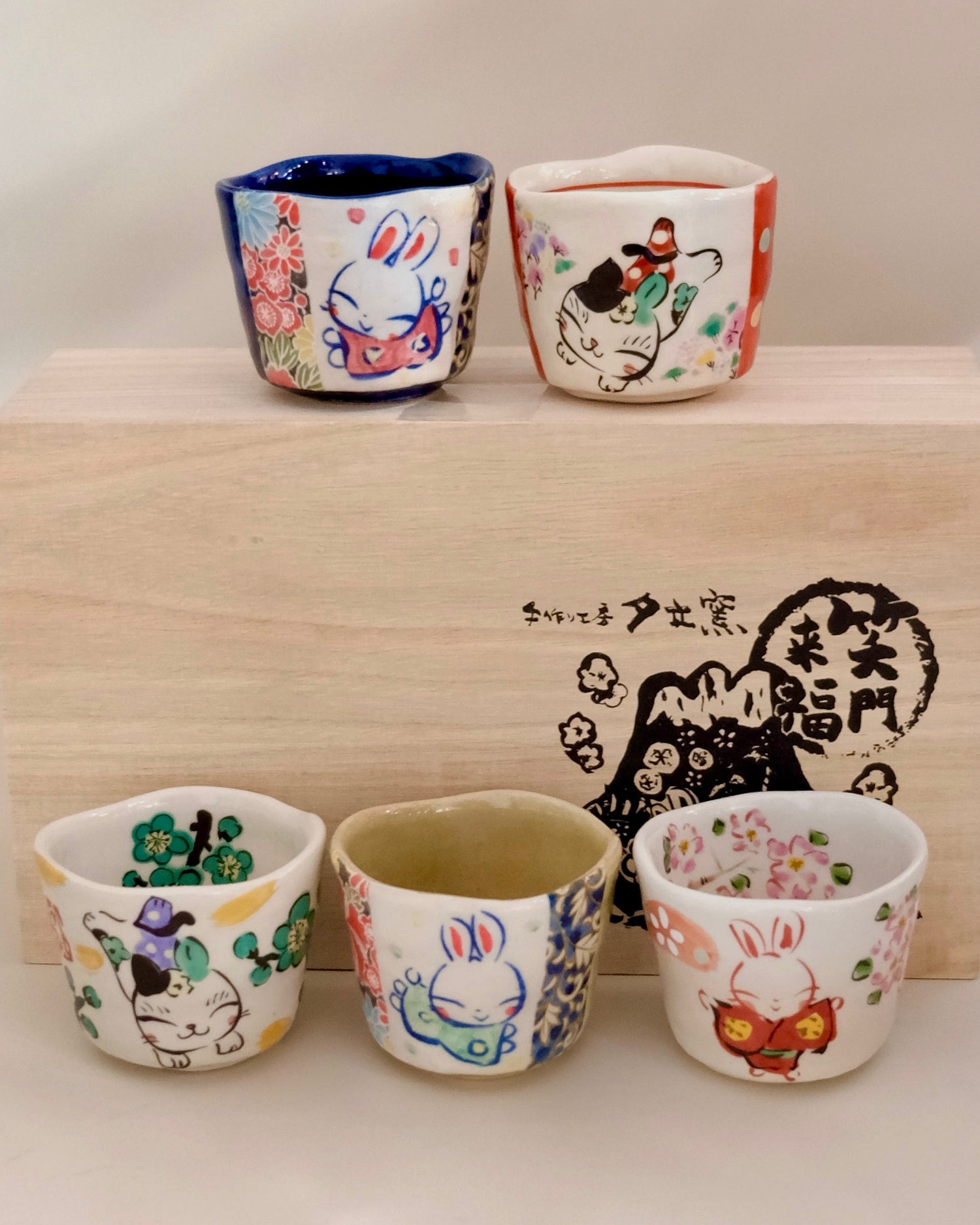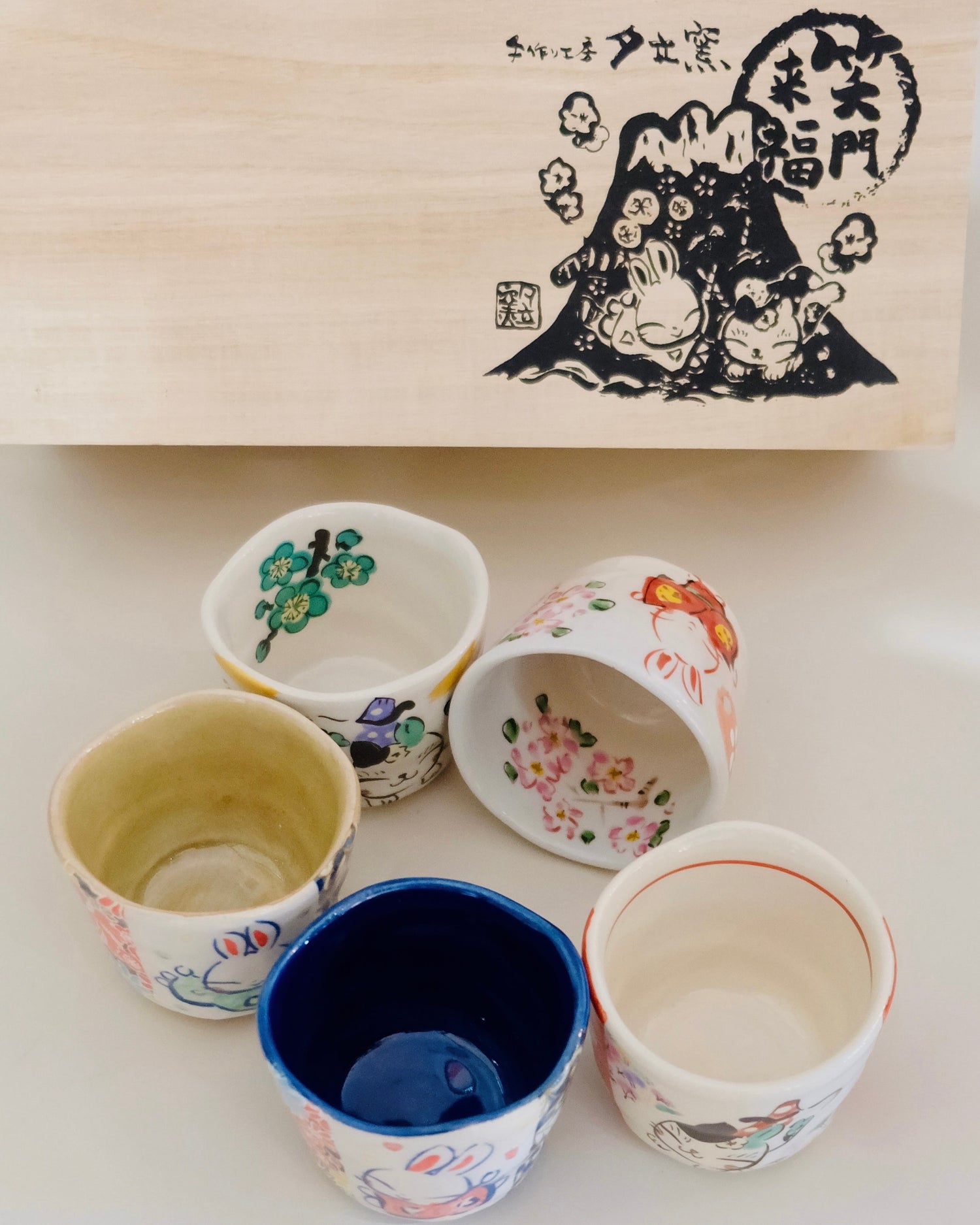 Yudachi Gama 5pcs Sake Cups(Wooden Box)