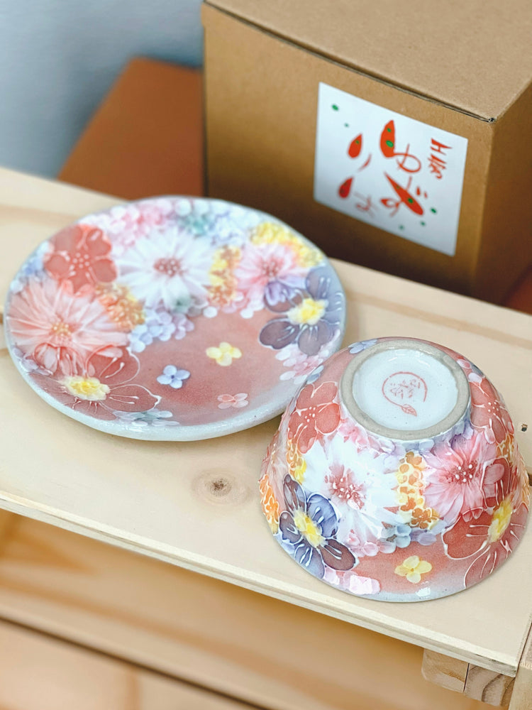 Yuzuriha Flower tea cup saucer set 紅彩花間取(Gift Box)