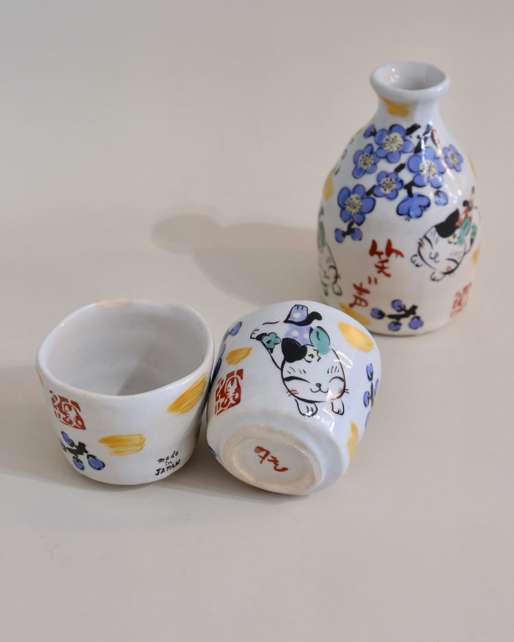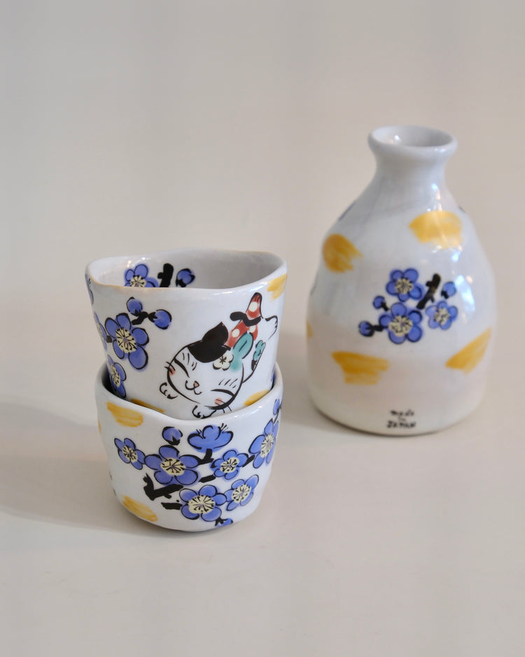 Yudachi Gama Blue Kitty Sake bottle w cups(Gift Box)