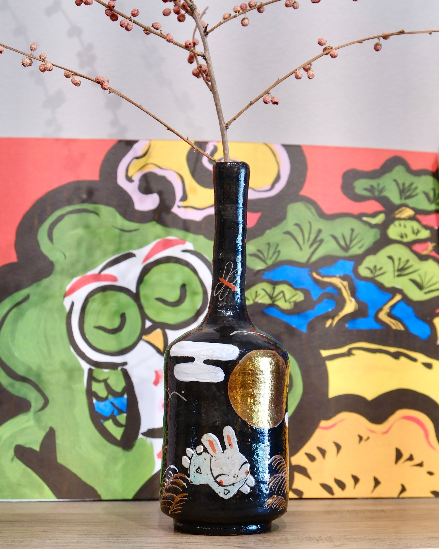 Yudachi Limited Black Bunny Vase (Gift Box)