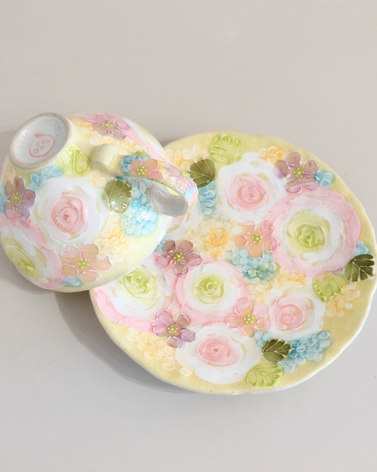 Yuzuriha Flower Coffee Cup Set 黄彩バラ紋 (Gift Box)