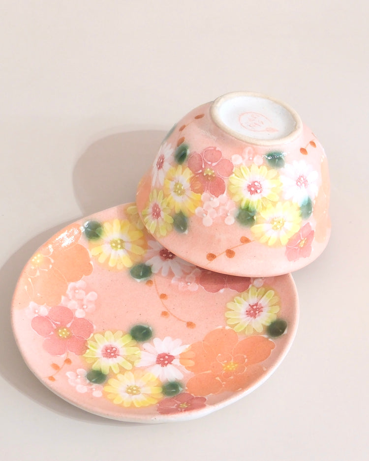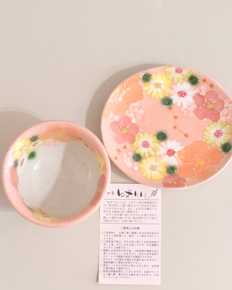 Yuzuriha Flower tea cup and saucer set 红彩花化粧(Gift Box)
