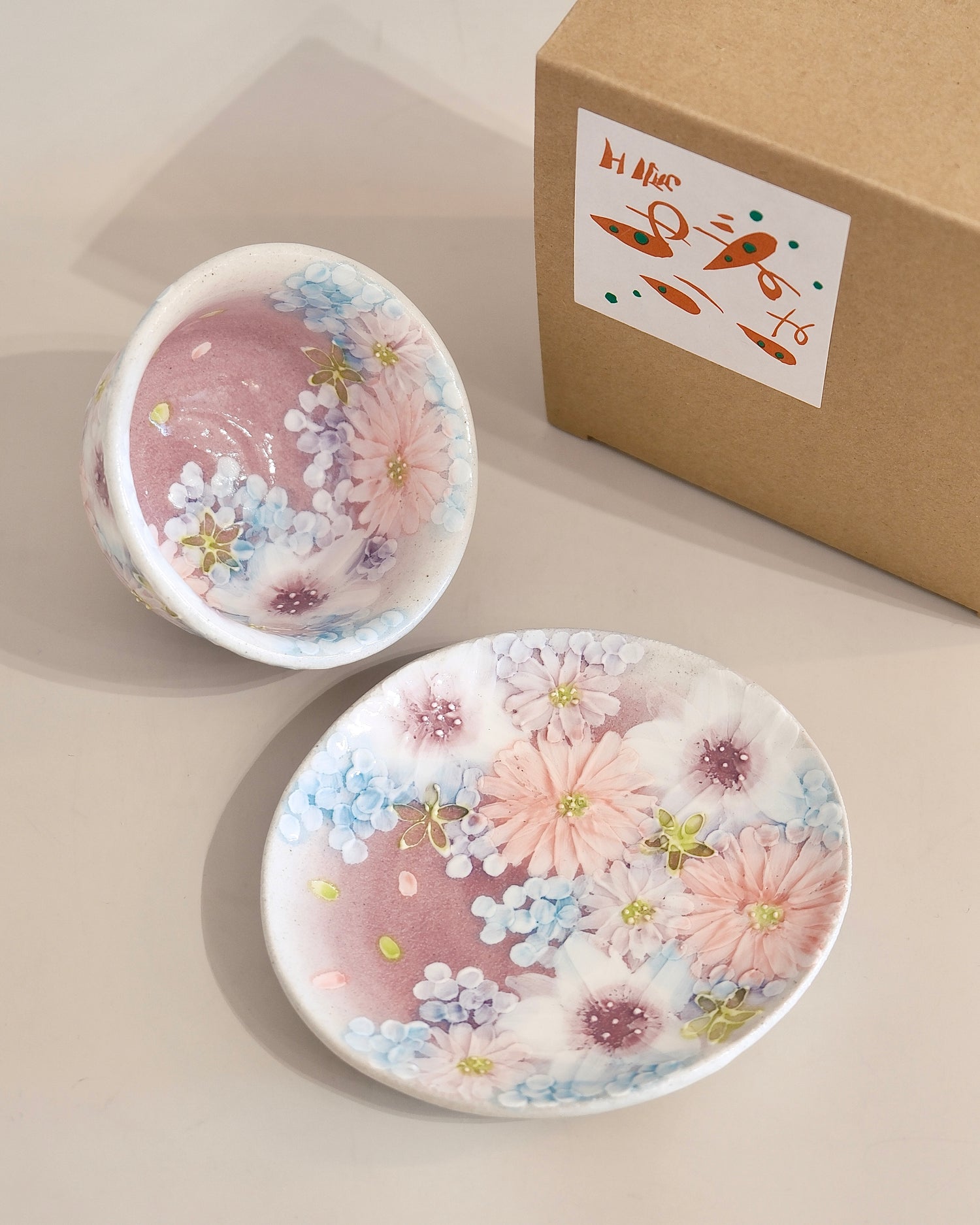 Yuzuriha Flower Teapot with tea cup & Saucer*2 色彩花(Gift box)