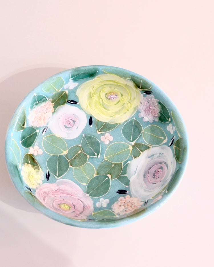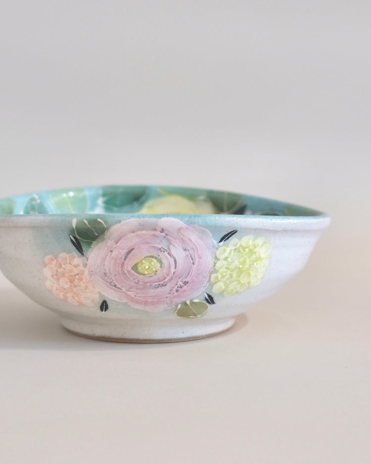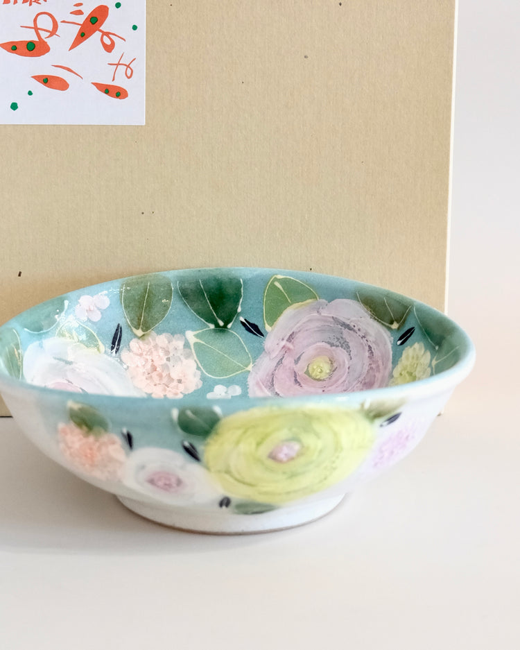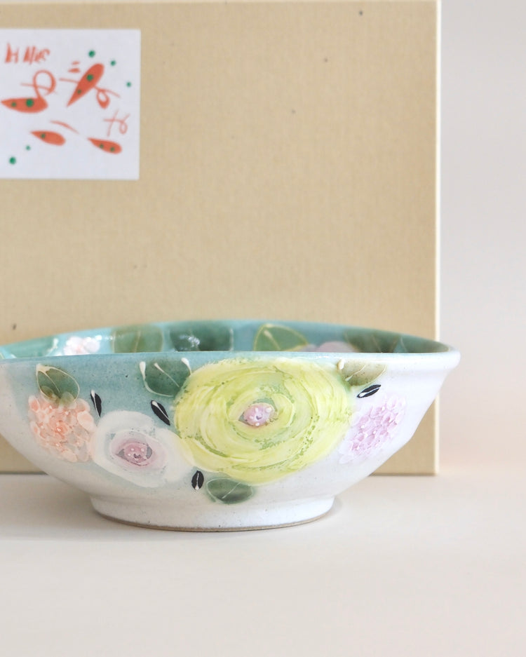Yuzuriha 17.5cm M Bowl 緑彩ローズ (Gift Box)