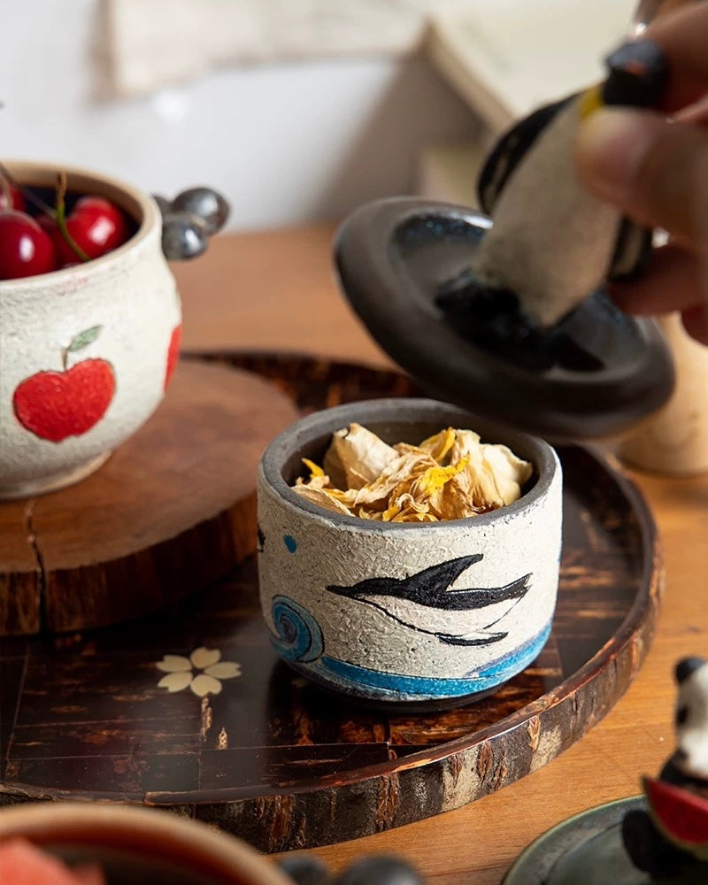 Arita Hand Draw Pottery Storage Jar (With Lid Gift Box)