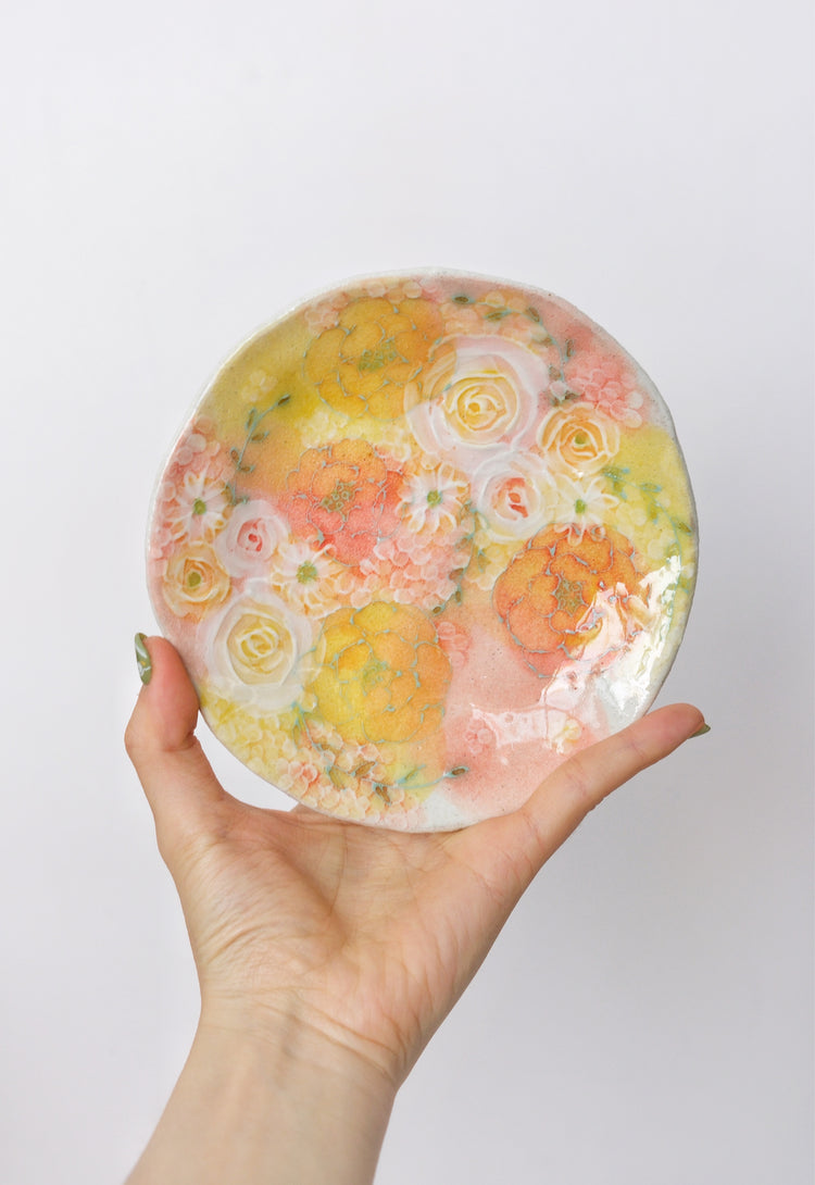 Artist 野村晃子 14.5 Pink Yellow Cake Plate