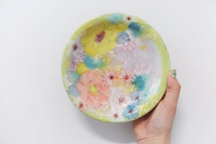 Artist 野村晃子 16.3 cm Green Yellow Plate