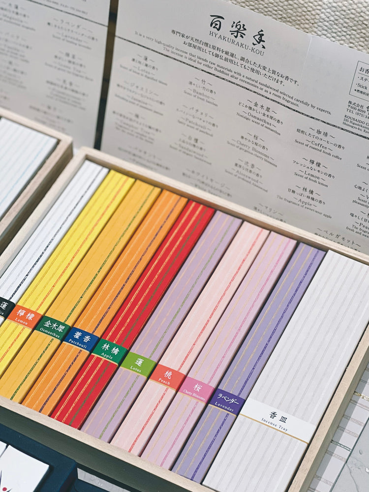 日本京都的百年老店香彩堂, 新品百乐香,木盒礼盒装 Rainbow包括:香立*1,薰衣草,樱花,桃,莲花,苹果,藿香,金木犀,柠檬,木莲。 Forest包括:香立*1,沉香,咖啡,白檀,楠木,竹子,绿茶,茉莉花,香草,木莲花。 每小盒里有6根香,含白色长香立。