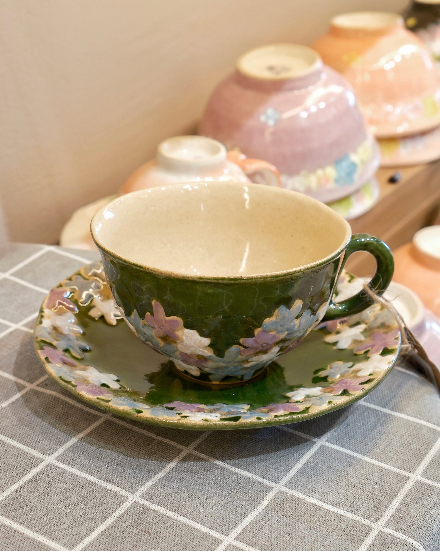 Size: cup 10cm*6.5cm. Plate:16cm.